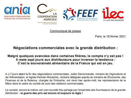 [CP] Négociations commerciales avec la grande distribution : Malgré quelques avancées dans certaines filières, le compte n’y est pas !