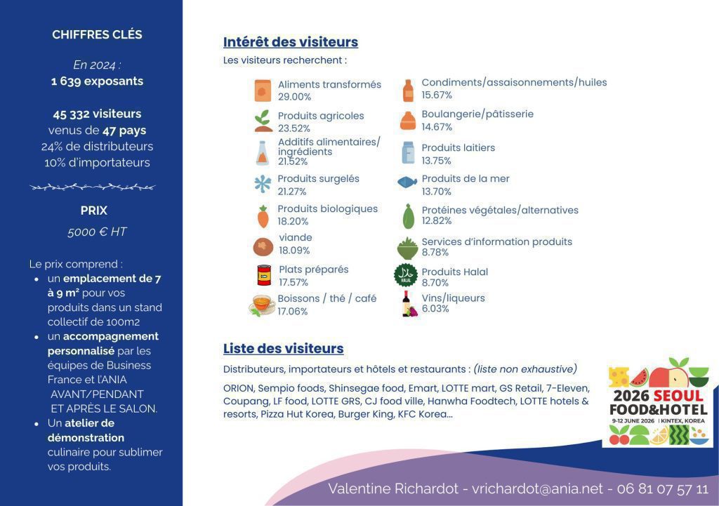 🤝 Stand dans le plus gros salon agroalimentaire de Séoul – Food & Hotel Séoul (B2B et B2C)
